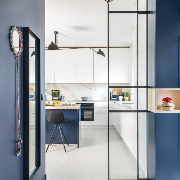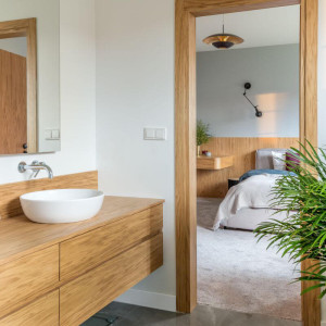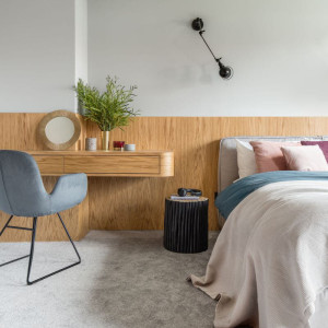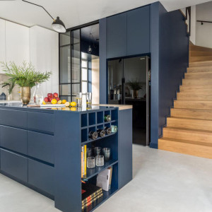 Użyte materiały: MDF lakierowany matowy, sklejka, fornir, spiek kwarcowy.