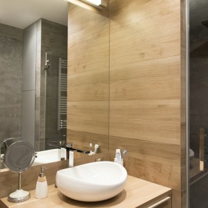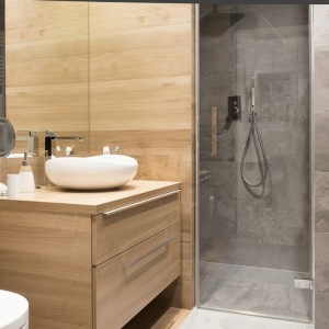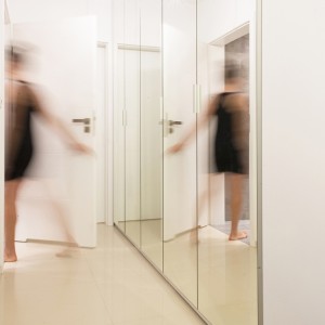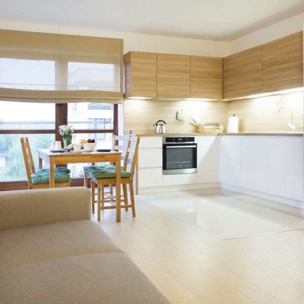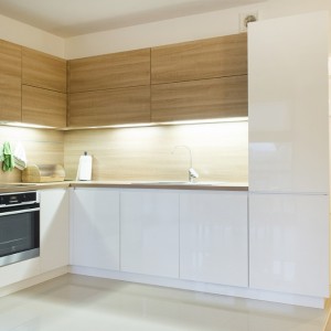 Meble na wymiar wykonane w Krakowie z MDF lakierowany w połysku + laminat drewnopodobny.