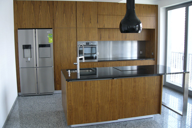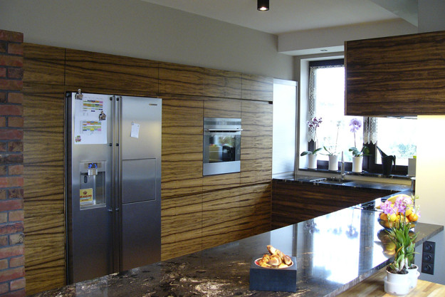 Kuchnia na ul. Piaskowej w Krakowie wykonana z forniru Amazaque.